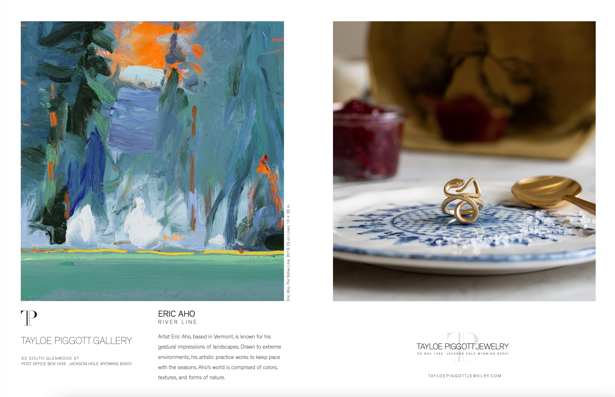 Through social media management, email marketing campaigns, event photography, and in-store sales assistance, Kyra worked across many aspects of the Tayloe Piggott Gallery brand. Kyra used graphic design to integrate the beauty of art and jewelry cohesively in magazine spreads, advertisement, and web design.